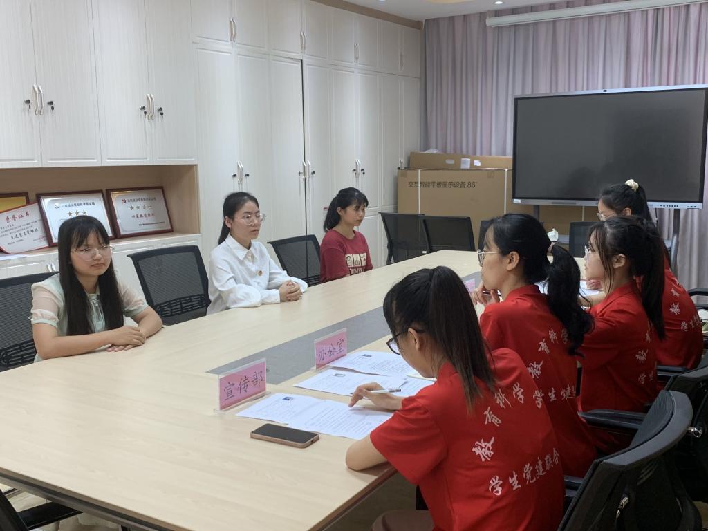 为完善我院学生党建工作联合会干部机制,培养和壮大我院学生党务工作干部队伍,6月18日中午,我院于东校区明德楼401会议室开展2023—2024学年学生党建工作联合会干部选聘面试工作。本次面试由学生党建工作联合会副会长刘春燕主持,各部门负责人担任面试官。