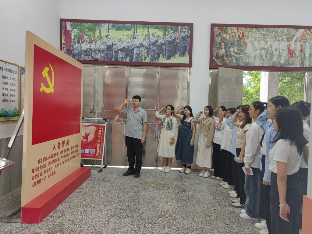 活动中,学生党员在解说员带领下参观李明瑞、俞作豫纪念馆,深入了解李明瑞、俞作豫在百色起义和北伐战争中的光荣事迹,现场感悟革命先辈追求理想、勇于斗争的大无畏革命精神,把对先辈的缅怀转化为砥砺前行动力。随后,李泽荣带领学生党员重温入党誓词,不忘初心,牢记使命。其间,学生党员代表分享红色故事感悟,阐述自身对红色文化理解,表示作为学生党员,应传承红色文化,锤炼党性修养,坚定理想信念。最后,通过开展有关党史知识竞赛活动,进一步激发学生党员学习党史热情及加深对党的二十大精神内涵理解。