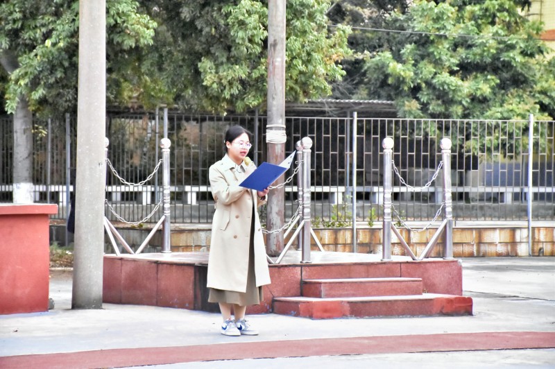 升旗仪式结束,学生代表黎娓围绕学雷锋、志愿服务进行国旗下演讲。她表示,我们应向雷锋学习,志愿全心全意为人民服务。雷锋精神激励着无数志愿服务者无私奉献、助人为乐,让我们用身体力行传承以“为人民服务”为核心的雷锋精神。