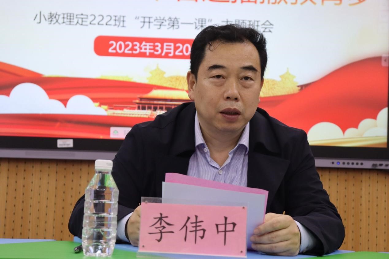 3月20日,李伟中校长深入我院小学教育理(定向)2022(2)班开展“开学第一课”主题班会活动。我院领导班子成员、辅导员及该班级班主任、全体学生参加此次班会。