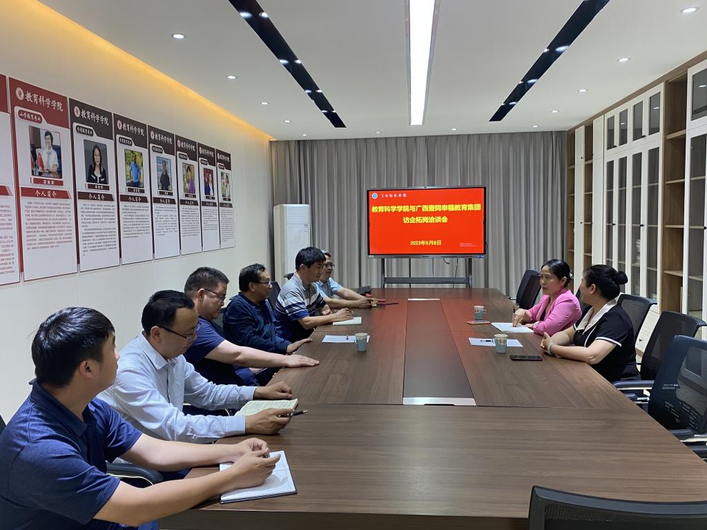 为进一步推进“访企拓岗促就业”专项活动,积极拓展毕业生就业渠道,促进毕业生高质量充分就业,5月8日,我院与广西壹同幸福教育集团于我校东校区明德楼410会议室开展“访企拓岗”洽谈会。校长助理、科研处处长石维有,广西壹同幸福教育集团董事长李凤、副董事长杨秀雄,学院领导班子成员及负责就业辅导员参加此次洽谈会。
