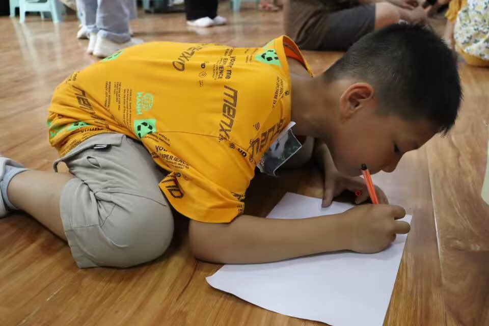随后,社区孩子在志愿者带领下有序开展各项游戏,孩子间相互传递姓名、兴趣、爱好,手拉手蹲下起立,自我介绍及动物蹲两个破冰游戏促进孩子对身边同学的了解,增进孩子间熟悉度,破除友谊屏障;夹球精准,沉稳有度,队友间有序接力的夹乒乓球游戏、孩子根据自身对词语的理解,展开丰富想象力,将对团队的责任及对队员的信任倾注于妙笔画作中的你画我猜游戏及团队成员默契配合,共同找寻缺失拼图的合力拼图游戏,促进孩子不断培养团队默契,增强团队凝聚力,展现团队良好精神风貌。