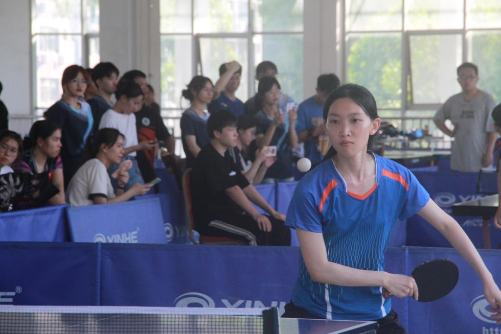 休息过后,决赛开始,我院和化食院对战争夺桂冠。比赛过程中,双方球员不断变换脚步,穿梭于球桌四周,或精准快攻,或巧妙防守,打得不相上下。我方运动员打出一个完美扣球,对方球员也不认输打出旋转球,比分进入僵持阶段。
