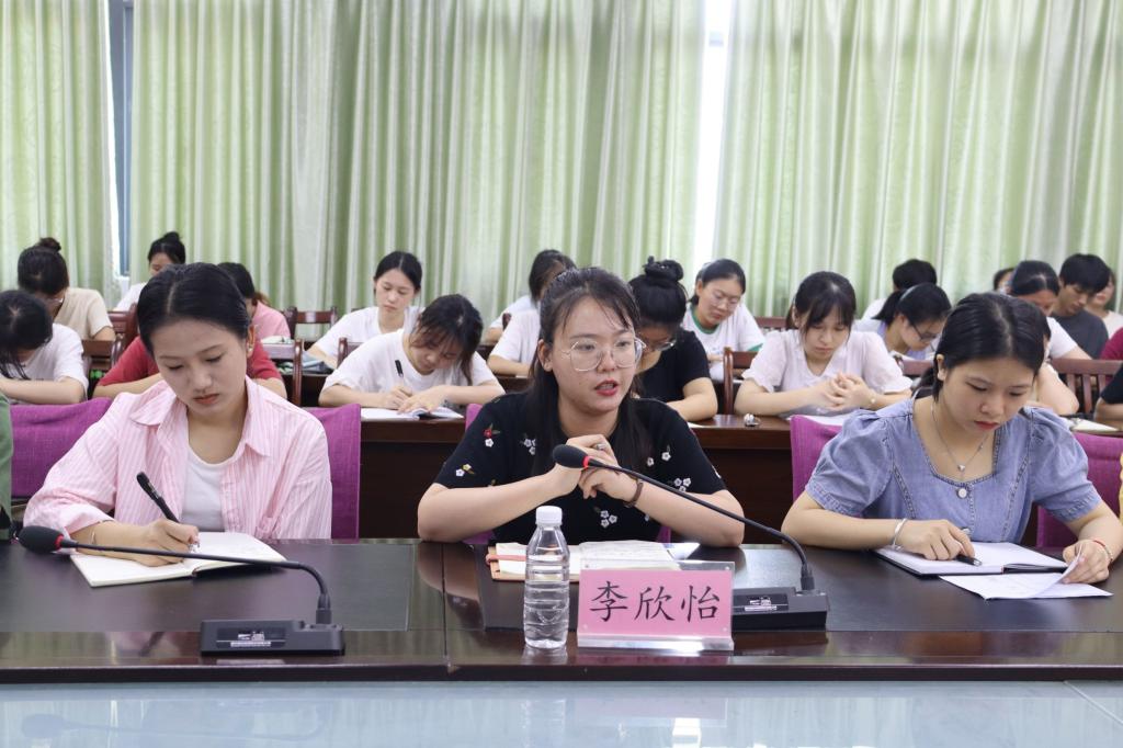 会上,各部门成员代表依次简要汇报本部门近期工作及后期工作计划。随后,李欣怡对各部门工作汇报及近期取得的各项成绩表示肯定与赞扬,她表示,我院欢送2023届毕业生文艺晚会的圆满举班离不开各个部门辛勤付出和积极配合,学生干部要继续发扬认真负责和团结协作的优良作风,再创佳绩。同时她针对近期工作中存在的一些问题和不足提出建议,她强调,各部门要从中吸取经验与教训,加以改进,追求进步,且临近期末,各部门负责人要着手准备述职报告,挖掘本部门工作亮点与特色,总结其不足之处,进行简洁明析总结。最后,她号召各部门成员积极参与暑期社会实践,在基层实践中吸取经验,汲取知识,增长才干,无私奉献,绽放青春绚丽光彩。