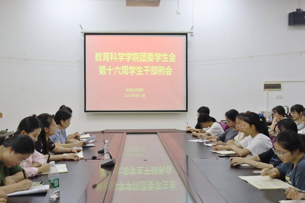6月12日中午,我院在东校区明德楼学院会议室召开团委学生会第十六周学生干部例会,本次会议由我院团委书记李欣怡主讲,我院团委学生会主席团成员及全体学生干部参加。