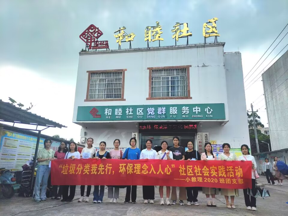 为丰富社区周围居民垃圾分类相关知识,使其进一步认识垃圾分类的意义和必要性,增强环保意识,6月27日,我院小学教育(数学与英语方向)2020班于玉林市玉州区和睦社区开展以“垃圾分类我先行,环保理念入人心”为主题社区服务实践活动,本次活动由该班班长雷华宇组织带队,该班22名学生参加。