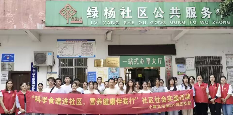 为培养我院学生社会责任意识,提高其服务人民群众能力,11月8日下午,小教文定向222班前往绿杨社区及社区周边开展“科学食谱进社区,营养健康伴我行”社会实践活动。本次社会实践活动由该班班长带队,该班全体学生参加。