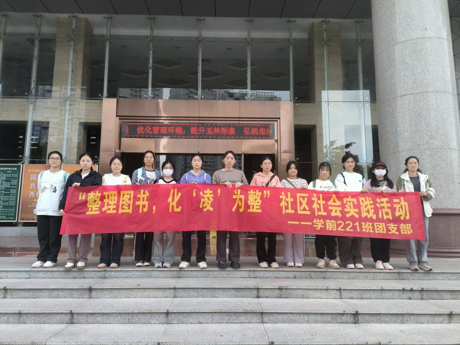 12月9日至10日,我院学前221班前往玉林市图书馆开展“整理图书,化‘凌’为整”社会实践活动。本次社会实践活动由该班班长石婷婷组织带队,该班全体同学参加。