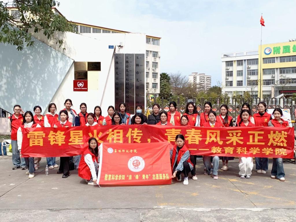 为进一步弘扬雷锋精神,传承“奉献、友爱、互助、进步”的志愿服务精神,3月19日,我院“追‘锋’青年”志愿服务队赴玉林市儿童特殊教育学校、儿童福利院开展志愿服务活动。我院团委书记李欣怡,辅导员严梅香带队。