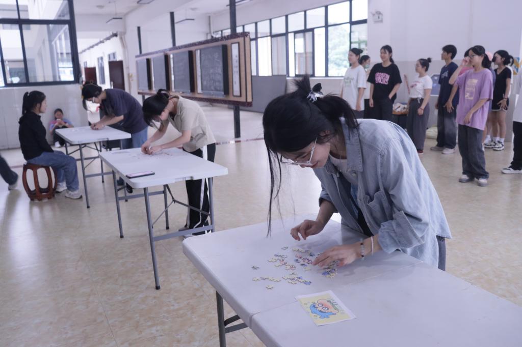 本次素质拓展活动由拔河、撕名牌、拼拼图等小游戏组成,为增加学生干部积极性和活动趣味性,活动最后设置奖励环节,为其颁发精美礼品。游戏过程中,团委学生会主席团成员维持现场秩序,确保游戏公平公正。学生干部以相同报数组成六支队伍开展比赛。随后,各小组积极商议游戏策略,成员间配合默契,欢声笑语此起彼伏、氛围热烈,充分展现青春活力和积极向上精神风貌。游戏结束后,各小组成员通过游戏赢取时间去抓取奖品。最后,黎懿娴对本次活动进行总结,她希望通过此次活动提高学生干部身心素质,培养其克服困难和解决问题的能力。
